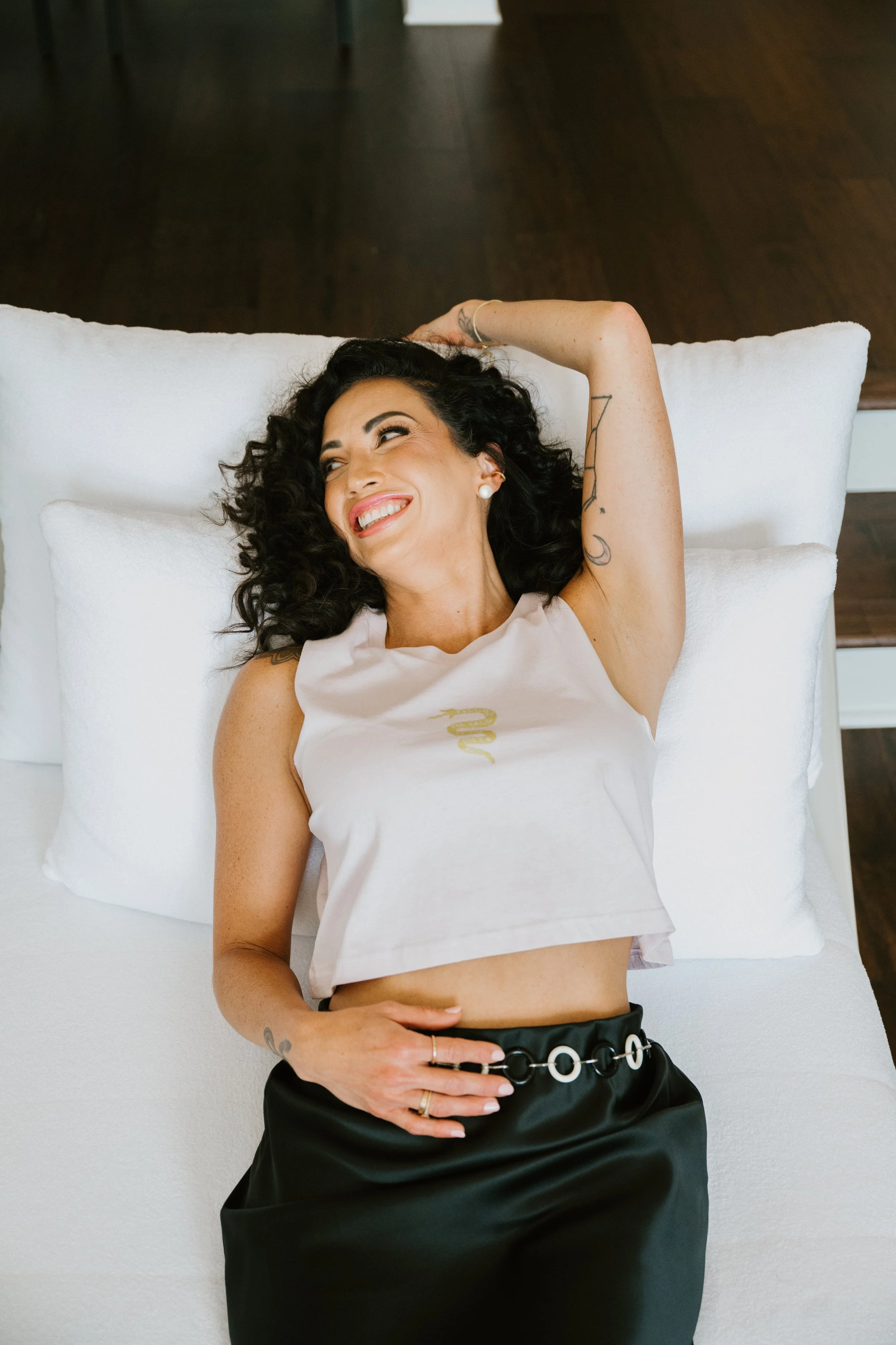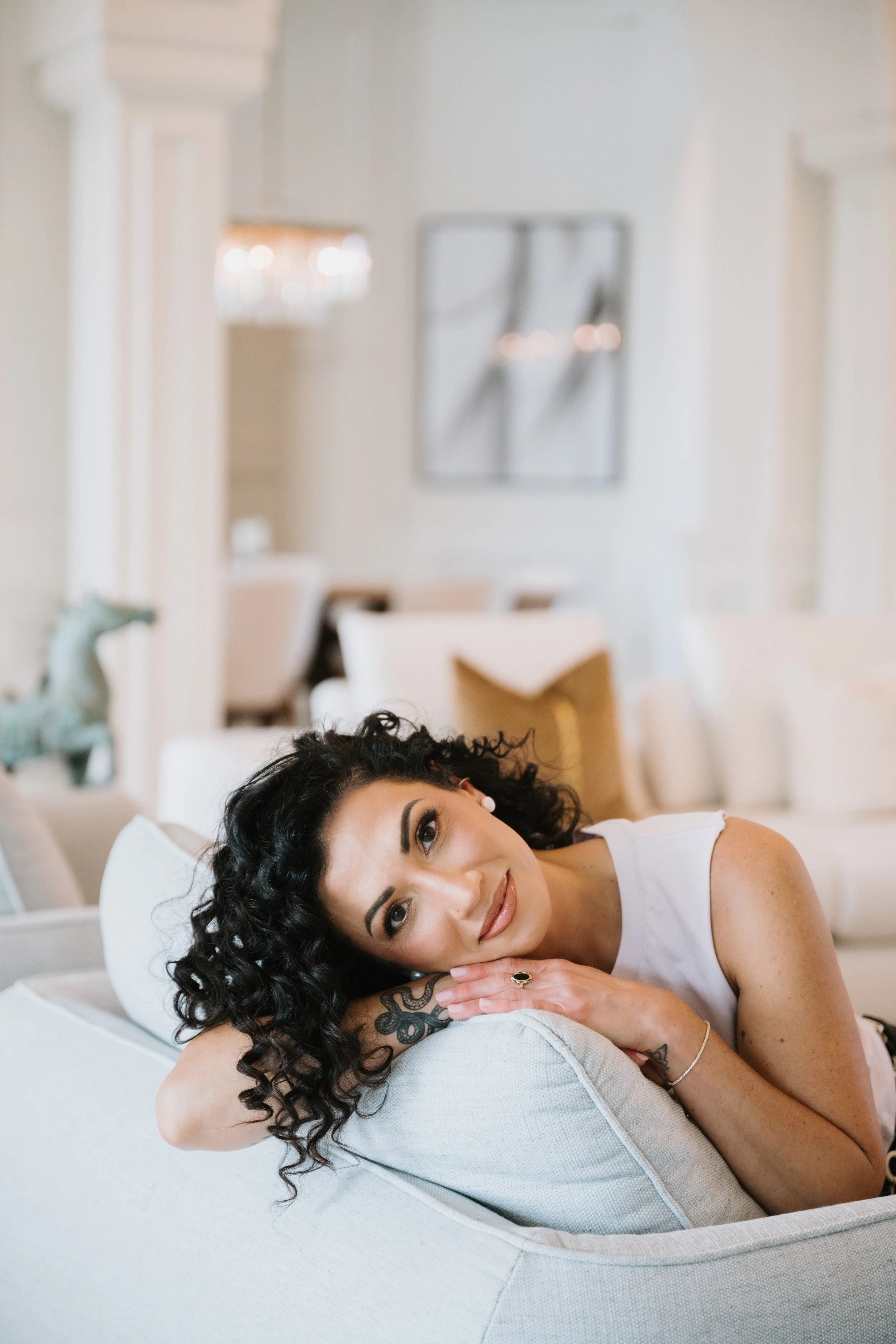 We chose a stunning luxury home as our location, pairing her brand's high-touch, elevated feel with her down-to-earth and joyful energy. Every room, every setup, and every outfit shift reflected a different aspect of her mission: spiritual depth, fun and approachable coaching energy, and the empowered elegance she brings to the women she serves.