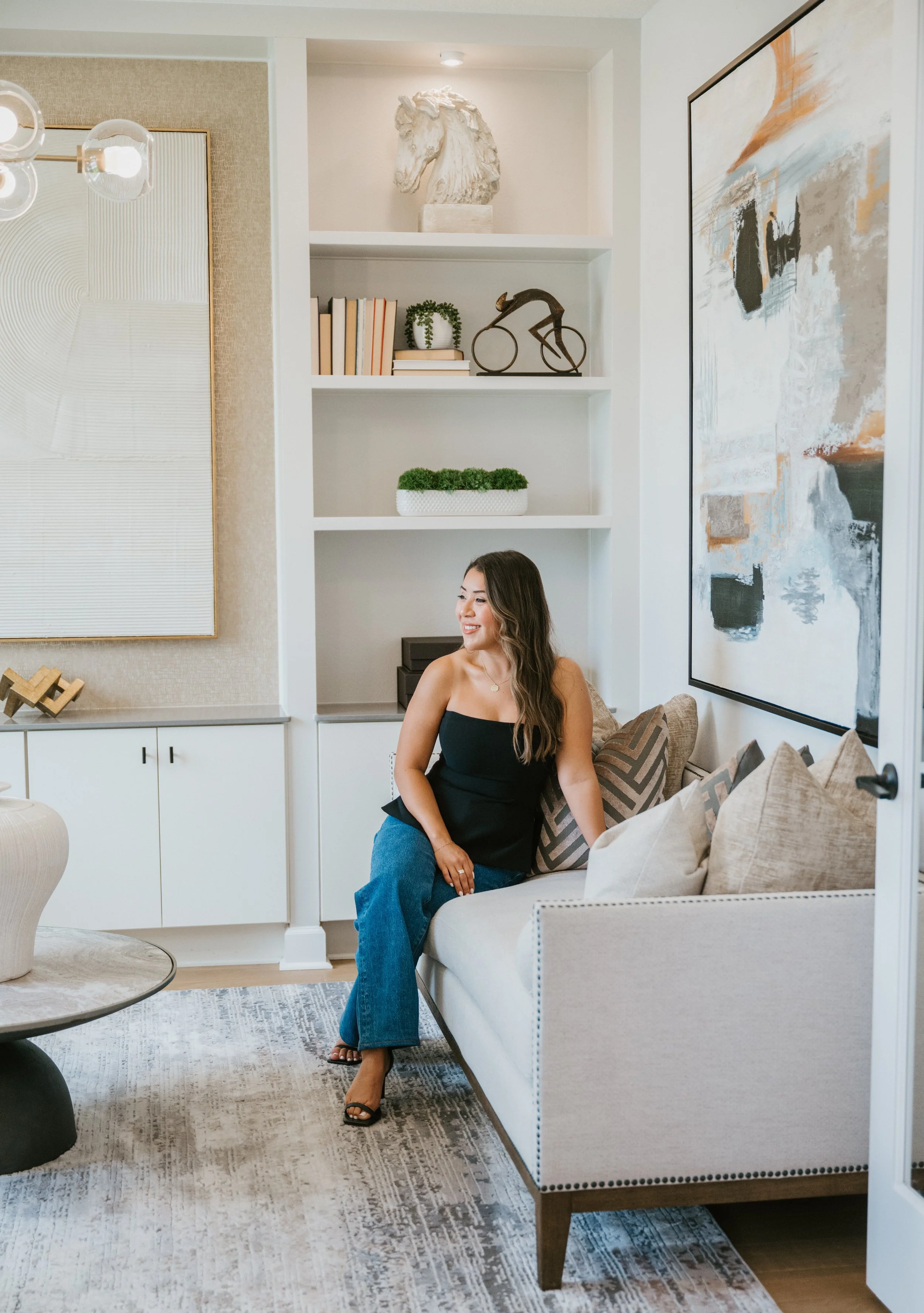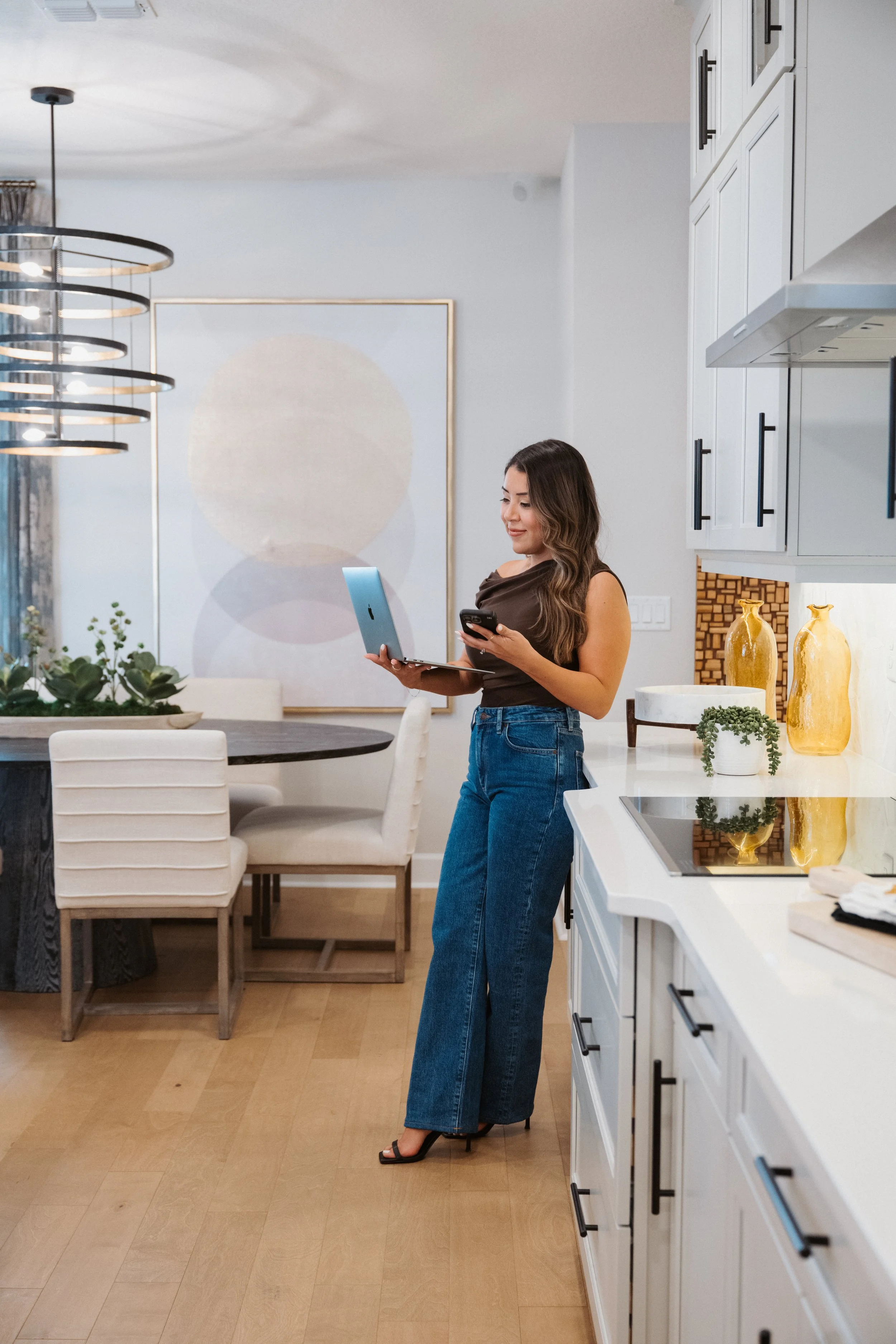 Florence’s commitment to quarterly sessions means she’s never scrambling for content. She always has fresh, on-brand imagery that fits the season, her current listings, and her personal style. This particular session took place in a gorgeous model home — the perfect backdrop to highlight her professional expertise and the lifestyle her clients dream about.
